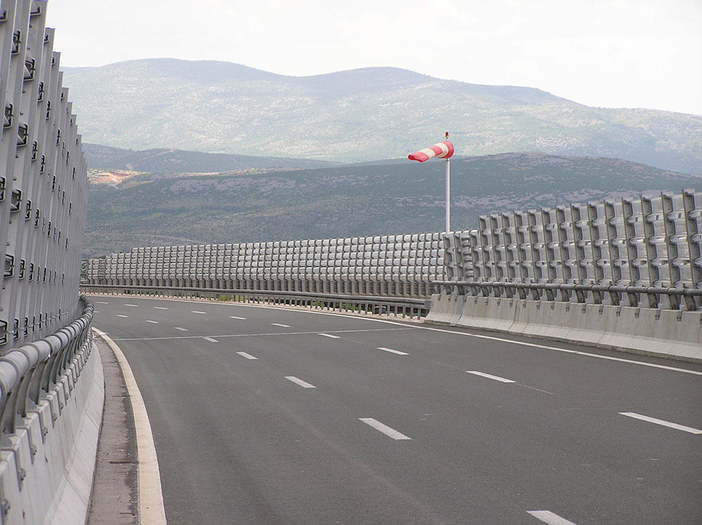 U svijetu postoji relativno malo iskustva sa zaštitom prometa od djelovanja vjetra na mostovima i vijaduktima. U novije vrijeme poznata su samo 3 primjera zaštite od vijetra: na mostu Severn uVelikoj Britaniji, na vijaduktu Millau u Francuskoj i na vijaduktu Čmi Kal u Sloveniji. U fazi koncipiranja vjetrobrana izvedene su zahtjevne teorijske i eksperimentalne studije